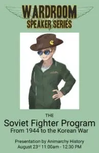 Content creator Animarchy history takes a deep dive into the history of the soviet fighter jet program. Join us for a lecture and discussion on how the Soviets developed aircraft in contention with the aviation advancements of the Western powers. 11 AM Saturday August 23rd.